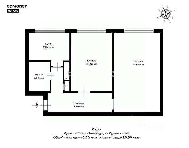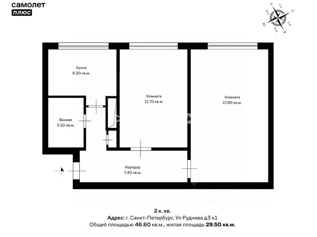 В прямой продаже двухкомнатная квартира в Выборгском районе Санкт-Петербурга.