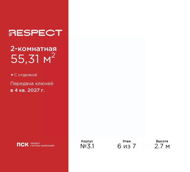 2-комн. квартира с предчистовой отделкой в ЖК "RESPECT" на 2 этаже. Общая площадь: 56.1 кв.м., жилая: 23.32 кв.м., площадь просторной кухни-столовой: 15.05 кв.м. Комнаты изолированные, все окна выходят на одну сторону. В квартире один балкон и одна лоджия, два совмещенных санузла. Терраса представляет собой роскошную зону отдыха, где вы на свой вкус можете создать атмосферу комфорта и уюта. Высота потолков 2.7 м. Квартира будет сдана с отделкой WHITE BOX, в которую включены следующие виды работ: - заливка стяжки; - установлена система отопления квартиры; - подготовлены потолки; - все стены выровнены, загрунтованы и отштукатурены; - электрическая проводка разведена по комнатам. Квартира будет готова к чистовой отделке. Квартира находится в корпусе 6. Дом монолитный, одноподъездный, высотой 13 этажей. На этаже 8 квартир. В подъезде 1 пассажирский и 1 грузовой лифт. Окончание строительства - 4 квартал 2026 года. Оформление сделки по договору долевого участия. В шаговой доступности от жилого комплекса расположены станции метро (расстояние по прямой): "Лесная" (800 м), "Площадь Мужества" (1.4 км), "Выборгская" (1.9 км), также недалеко от этого корпуса находятся станции метро: "Академическая", "Политехническая". Квартал строится на Полюстровском пр, 87, в одной из самых востребованных локаций Петербурга. В 10 минутах пешком - метро "Лесная" и в 10 минутах на транспорте - Петроградская сторона. Высота домов от 7 до 13 этажей. На территории Respect строится школа на 1125 учащихся и детский сад на 240 мест. Запроектированы собственная газовая котельная, закрытая территория, дворы без машин и подземные паркинги с лифтами. Вентилируемые фасады облицованы клинкерным кирпичом. Дома из этого материала служат веками, являясь гордостью хозяев. Дизайн парадных зон и входных групп - сочетание лаконичности отделки и декоративных элементов с текстурами из натурального камня и дерева с приглушенной подсветкой теплым светом. Во входных группах расположены гостевые зоны с мягкой мебелью. Вся территория квартала будет связана единой концепцией благоустройства, разработанной ландшафтным бюро L.BURO. В основе - идея создания увлекательного ландшафтного пространства для насыщенной жизни, включающего в себя пейзажные зоны, современные архитектурные композиции, открытые террасы на стилобатах с зонами отдыха и парклетами, спортивными площадками. Это пространство для людей всех возрастов и различных увлечений. На эксплуатируемой кровле на уровне первого этажа в домах 1 и 4 будут обустроены общественные видовые террасы. В квартале запроектированы внутренние закрытые территории дворов домов без доступа автомобилей и безбарьерная среда для велосипедистов и колясок. Предусмотрены IP-домофония с функцией дистанционного открывания калиток и парадных, а также дистанционный сбор показаний счетчиков и мобильное приложение для жителей. Для безопасности жителей квартала - круглосуточное видеонаблюдение и служба охраны. В каждой квартире предусмотрены внешние ко Купить 2-комнатную квартиру в ипотеку в округе Пискарёвка в Санкт-Петербурге.