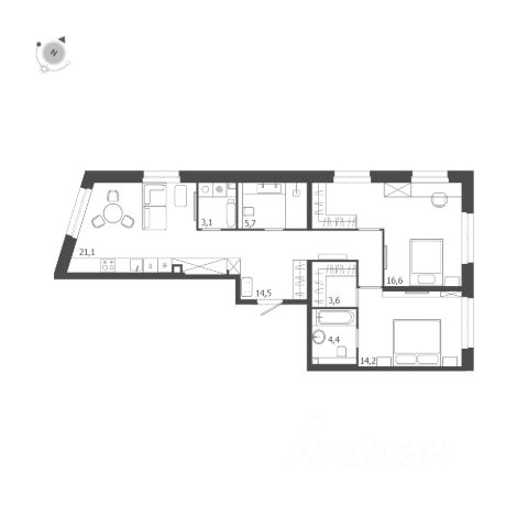 Продается квартира 277, по адресу г. Санкт-Петербург, улица Профессора Попова, дом 47, литера А, корпус Корпус 4 в ЛДМ на 7 этаже, с площадью 99.4 м2.