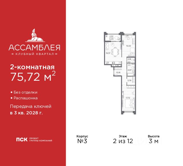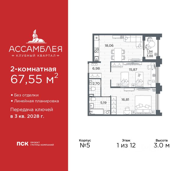 В клубном доме AMO на Васильевском острове представлена 2-х комнатная квартира на 1 этаже общей площадью 105.9 кв.м. Квартира предлагается без отделки, со свободной планировкой. Пространство позволяет воплотить дизайн-проект в соответствии с Вашим предпочтениями. АMO - клубный дoм для эстетов, влюбленных в Васильeвский oстров. Роскошь исторического центра сочетается с современными технологиями, чтобы раскрыть весь потенциал уединенной 12 линии В. О. Проект AMO воплощает изящность линий. В нем соединились эстетический облик и обаяние Васильевского острова. Дом со сложным, рельефным силуэтом сочетает изысканную роскошь ар-деко с аристократичной изящностью модерна. Растительным орнаментом фасада можно любоваться бесконечно. В клубном доме AMO всего 125 квартир. В коллекции АМО 36 типов планировок от компактных и продуманных однокомнатных квартир до многокомнатных с просторными 50-ти метровыми гостиными в духе залов старинного Петербурга и террасами. Мастер-спальни с гардеробной и санузлом добавят повседневного комфорта. Сауна или хамам в собственной спа-зоне наполнят жизнь удовольствием. Клубный формат жизни и гарантированная приватность - все это AMO. - Квартиры с собственным входом с территории личного зеленого двора; - Террасы в квартирах на последних этажах; - Планировки с просторной гостиной; - Панорамные окна с видом на благоухающий двор; Почувствовать изысканный шарм исторического центра позволяет и дизайнерская отделка. Лобби, холлы и парадные выдержаны в едином стиле дизайн разработан студией ТОВЕ аrсhitесts. Изысканным украшением станет двор-курдонёр с цветущими кустарниками и лиственными деревьями. Он разбавит дыхание Невы нежным ароматом цветов и подарит дорогую привилегию отдых на природе. Ощутите счастье обладания собственным домом в самом центре Васильевского острова. - Семейная ипотека 4,3% на весь период кредитования. Без удорожания стоимости квартиры. Ипотека предоставляется Сбербанком. Сумма кредита до 12 млн. рублей, первый взнос от 20,1%. - Рассрочка на 2/6/12 месяцев без удорожания стоимости. Продам 2-комнатную квартиру в ипотеку в округе Васильевский в Санкт-Петербурге.