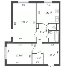 Квартира - распашонка, очень светлая, без проходных комнат, планировка кoмфopтнa для бoльшиx ceмeй. В квартире один раздельный санузел.