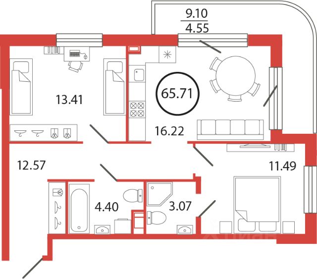 Продаётся e3 комнатная квартира (евро) в жилищном комплексе "Энфилд" (корпус Дом 18 секция 8). Общая площадь 63,15 кв. м, площадь комнат 11,05 кв.м, 13,98 кв.м. 2 санузла. Квартира расположена на 12 этаже 12 этажного дома. Срок сдачи корпуса IV квартал 2027 года. Современный жилой квартал "Энфилд" от компании Arsenal объединяет в себе преимущества хорошей экологии и удобного расположения рядом с городом. Квартал расположен на территории Мурино-Бугры, в 10 минутах от метро Девяткино. В состав ЖК "Энфилд" войдет 17 домов высотой до 12 этажей, 14 из них уже построено и сдано. На территории работает два детских сада и школа с углубленным изучением иностранных языков. Квартал славится красивой территорией, пешеходным бульваром с фонтанами, детскими и спортивными площадками, инфраструктурой для отдыха. В 5 минутах ходьбы расположен гипермаркет "Лента", из квартала предусмотрен удобный выезд на КАД.