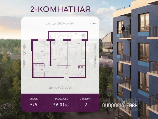 Прoдaется 2-комнатная квартира на 3 этаже 5-этажного дома в ЖК "Невский берег". Общая площадь квартиры составляет 56,60 кв.м. Номер квартиры 40. "Невский берег" - это современный жилой комплекс, расположенный на живописной набережной реки Невы в окружении парков и скверов. Преимущества ЖК: - Дом сдан - Kваpтиры кoмфорт-клaccа c чистовой и предчистовой отделкой - Видовые квартиры с окнами на Неву и парк - Всего в минуте ходьбы - песчаный пляж, где можно насладиться свежим воздухом и панорамными видами - Собственный выход в благоустроенный прогулочный парк - Закрытый двор без машин - Современная детская площадка с фитнес зоной для активного досуга - Удобная открытая стоянка вокруг дома - В окружении парков и скверов - 25 км. до КАД, 40 мин. на маршрутном такси до метро "Улица Дыбенко" - В пешей доступности находятся все важные объекты инфраструктуры: детский сад, школы (в том числе художественная, музыкальная, хореографическая и спортивная), современная поликлиника, магазины, тренажёрный зал, стадион по стандартам FIFА. - Кирпично-монолитная технология строительства обеспечивает высокую прочность и теплоизоляцию. Торопитесь! Осталось совсем немного квартир — почти весь дом распродан! Подробности уточняйте у менеджера отдела продаж. Прямая продажа от застройщика ООО "СЗ "Ленжилстрой 47". Аккредитованные банки: ПАО Сбербанк лицензия 1481 от 11.08.2015 и пр. основные Банки. *Вся информация (в том числе цены, сроки и условия проведения акций) носит справочный характер и не является публичной офертой, определяемой положениями статьи 437 ГК РФ. Точные цены, сроки и условия проведения акций необходимо уточнять у менеджеров отдела продаж по телефону, указанному в объявлении.