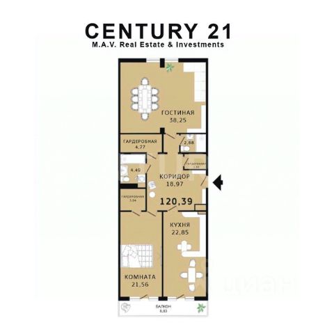 • Общая площадь — 71 кв. м