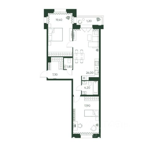 • Гостиная — 20,1 кв. м