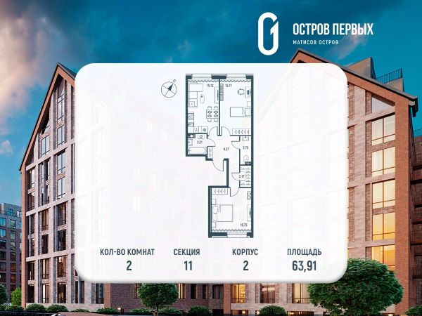 Остров первых новый премиальный квартал в центре Петербурга, на Матисовом острове. Всего в нескольких минутах находятся легендарная Новая Голландия, величественный Мариинский театр и вся культурная палитра Петербурга. Архитектура, разработанная Евгением Подгорновым и его студией INTERCOLUMNIUM, отражает характер города. Фасады облицованы кирпичом терракотового и серого оттенков. Все материалы отвечают высокому качеству строительства. Компания Fizika Development бережно восстановит исторический объект, воплощающий величие императорской России. Краснокирпичное производственное здание с водонапорной башней завода шотландского инженера Чарльза Берда станет лицом клубного квартала "Остров первых" и новой точкой притяжения для горожан. Приватная территория, сочетающая камерную атмосферу и комфорт, была создана ведущими урбанистами города. Проектом предусмотрен одноуровневый подземный паркинг под жилыми корпусами и дворовым пространством, а также гостевые парковочные места по периметру квартала. Особое внимание уделено безопасности: закрытые дворы, охраняемая территория, круглосуточное видеонаблюдение и контроль доступа 24/7. В премиальном квартале "Остров первых" представлены уникальные планировочные решения: от уютных студий до просторных трехкомнатных квартир с потолками до 5,1 метров.