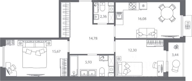 • Большая лоджия, которая может служить уютной зоной отдыха или рабочим пространством.
