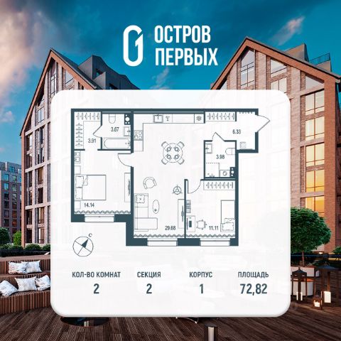 Купить 2-комнатную квартиру в кирпично-монолитном доме на улице Перевозная в Санкт-Петербурге
