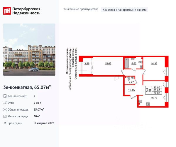 Особенности: окна на две стороны, вид на воду, мало квартир на этаже