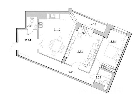 - Жилая - 43.5 м2