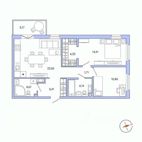Квартира с продуманной планировкой, которая позволяет максимально эффективно использовать каждое помещение - это позволит получить максимум комфорта для жизни.