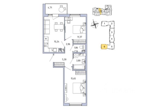 Продажа однокомнатная квартира. Жилой комплекс Высший пилотаж. Гатчина, ул. Авиатриссы Зверевой, 14. Площадь — 37 метров. Планировка: кухня-гостиная — 17,1 метров спальня — 12,6 метров прихожая — 3,8 метров совмещённый санузел — 4,4 метров Характеристика: качественный комплексный ремонт; встроенная кухня с бытовой техникой; тёплая застеклённая лоджия; высота потолков — 2,7 м. Особенности комплекса: 12-этажный монолитный дом; дизайнерская отделка мест общего пользования; два современных грузопассажирских лифта (Otis); территория с видеонаблюдением и диспетчерской службой 24/7; детская и спортивная площадки, зона отдыха, озеленение с элементами ландшафтного дизайна; на первом этаже — коммерческие помещения: магазины, кафе, салон красоты, аптека и другое. Инфраструктура В шаговой доступности: школы и детские сады (по регистрации доступно поступление в МБОУ Гатчинский центр образования Высший пилотаж); новая поликлиника с передовым диагностическим оборудованием; торговый центр Пилот с магазинами, кинотеатром и другими услугами; остановки общественного транспорта, железнодорожная станция Гатчина-Балтийская (примерно 1,3 км); Дворцовый и Приоратский парки (примерно 15 минут пешком); физкультурно-оздоровительный комплекс Арена; ледовая арена (в планах развития района). Дополнительные преимущества индивидуальные приборы учёта теплоэнергии в каждой квартире; система фильтрации питьевой воды, фильтры для смягчения воды; тёплый пол в ванной комнате и санузле.