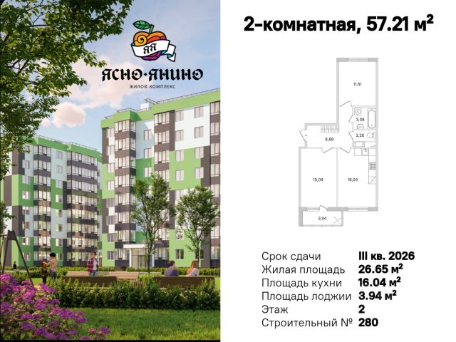 Продаётся 2-комн. квартира площадью 55,2 кв.м на 15 этаже 15 этажного дома (Корпус 1, Секция 2) проекта ПИК Янинский лес. Светлый просторный подъезд на уровне земли, функциональная планировка, большие окна, c отделкой. Жилой квартал "Янинский лес" возводится в районе Янино-1 Ленинградской области. Автобусная остановка находится в 3 минутах пешком. Проект расположен вплотную к восточной границе Санкт-Петербурга - в 4 минутах от КАД. До метро "Ладожская" - 23 минуты на общественном транспорте. До исторического центра города можно доехать за 25 минут на автомобиле. "Янинский лес" - масштабный проект из 32 жилых корпусов, где будет всё для комфортной жизни. Здесь предусмотрены надземные паркинги, откроются детские сады, школа и поликлиника. Кроме этого, появятся места, в которых можно проводить свободное время: ледовая арена и торговый центр площадью больше 3000 м². Жилой район строится по всем правилам ПИК-Стандарта: в зелёных дворах-парках появятся современные детские и спортивные площадки, пешеходный бульвар и другие места для отдыха. На первых этажах разместятся магазины, кафе и другие сервисы. Во дворах не будет автомобилей, а для гостей предусмотрены парковочные места. Проект окружают лесные массивы. В пешей доступности находится Ржевский лесопарк: летом там можно гулять и собирать грибы, а зимой кататься на лыжах. Также рядом расположен памятник природы Колтушские высоты - парк с обустроенными экотропами и веломаршрутом. А главное место притяжения местных жителей - озеро с обустроенным местом для пикников. Артикул 1048999 (Застройщик ООО "СПЕЦИАЛИЗИРОВАННЫЙ ЗАСТРОЙЩИК"ЭКСТРАГРАД") [cn_sbp_1828271]