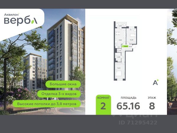 2-комнатная квартира площадью 55.10 в ЖК "А101 Всеволожск" c лоджией на 12 этаже. Квартира с отделкой. Вид из окна во двор. В квартире 2 санузла. Высота потолков 2.95 м. ОТДЕЛКА Для квартир с чистовой отделкой предлагается три варианта дизайна: Классика, Карелия светлая и Карелия темная. Варианты всех дизайнерских решений представлены на фотографиях. Подробности можно уточнить у менеджера. На все отделочные работы от застройщика предоставляется гарантия. ОСОБЕННОСТИ ПЛАНИРОВКИ Глубокая лоджия от 1,4м позволяет организовать отдельный кабинет, мастерскую или зимний сад с лаундж-зоной. ПАРАДНАЯ В каждой парадной предусмотрены места для хранения велосипедов и колясок, гостевой санузел, лапамойка (место для мытья домашних животных или колес велосипедов) и удобная зона ожидания для гостей. ДВОРЫ И ОКРУЖЕНИЕ Просторные дворы свободны от машин и закрыты от посторонних. Большую часть комплекса займут благоустроенные зелёные зоны, теневые сады и городские общественные пространства с развитой тротуарной сетью и велодорожками. Каждый дом оборудован системами видеонаблюдения и контроля доступа. Не хватает средств на покупку кладового помещения? Оформите ипотеку на квартиру и добавьте к ней часть стоимости кладовой. ЗАСТРОЙЩИК ГК "А101" - крупный инвестиционно-строительный холдинг, занимает 6-е место по объему строительства в России (по данным "Единого ресурса застройщиков" на 2023 год). НКР присвоило ГК "А101" кредитный рейтинг A+.ru, подтверждая его надежность и финансовую устойчивость для завершения строительства ЖК.