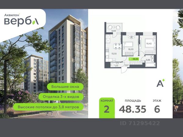 2-комнатная квартира площадью 55.10 в ЖК "А101 Всеволожск" c лоджией на 12 этаже. Квартира с отделкой. Вид из окна во двор. В квартире 2 санузла. Высота потолков 2.95 м. ОТДЕЛКА Для квартир с чистовой отделкой предлагается три варианта дизайна: Классика, Карелия светлая и Карелия темная. Варианты всех дизайнерских решений представлены на фотографиях. Подробности можно уточнить у менеджера. На все отделочные работы от застройщика предоставляется гарантия. ОСОБЕННОСТИ ПЛАНИРОВКИ Глубокая лоджия от 1,4м позволяет организовать отдельный кабинет, мастерскую или зимний сад с лаундж-зоной. ПАРАДНАЯ В каждой парадной предусмотрены места для хранения велосипедов и колясок, гостевой санузел, лапамойка (место для мытья домашних животных или колес велосипедов) и удобная зона ожидания для гостей. ДВОРЫ И ОКРУЖЕНИЕ Просторные дворы свободны от машин и закрыты от посторонних. Большую часть комплекса займут благоустроенные зелёные зоны, теневые сады и городские общественные пространства с развитой тротуарной сетью и велодорожками. Каждый дом оборудован системами видеонаблюдения и контроля доступа. Не хватает средств на покупку кладового помещения? Оформите ипотеку на квартиру и добавьте к ней часть стоимости кладовой. ЗАСТРОЙЩИК ГК "А101" - крупный инвестиционно-строительный холдинг, занимает 6-е место по объему строительства в России (по данным "Единого ресурса застройщиков" на 2023 год). НКР присвоило ГК "А101" кредитный рейтинг A+.ru, подтверждая его надежность и финансовую устойчивость для завершения строительства ЖК.