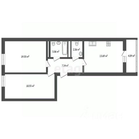 Комнаты изолированные 16 и 12 кв.м, кухня 5,3 кв.м, раздельный санузел.
