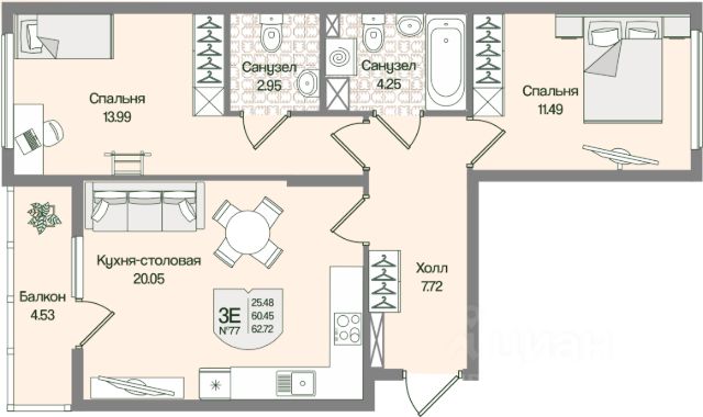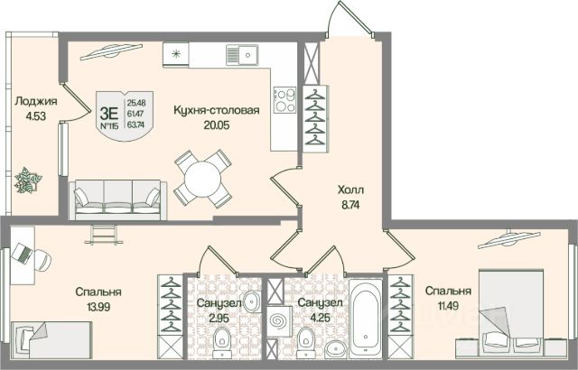 Продается 2-комнатная квартира в Квартале "Охтинские Высоты". Проект "Охтинские Высоты" - это малоэтажный квартал в Мистолово, Всего в 10 минутах езды от Санкт-Петербурга, в центре притяжения! Совмещающий комфорт городской жизни с загородной атмосферой. Жителям доступны школы, детский сад, торговый центр и близость к природе. В 5 минутах ходьбы находится курорт "Охта Парк" с горнолыжными трассами, конный клуб, а за домом — живописный лес для прогулок. Во дворе квартала обустроены зоны отдыха, детская площадка, спортивная зона и тихие уголки для каждого: от цветущих садов с беседками до приватных патио для жителей первых этажей. Двор закрыт для автомобилей, оснащён видеонаблюдением и умными домофонами с доступом через мобильное приложение Загородный квартал бизнес-класса "Охтинские высоты" - это ваш новый образ жизни, в котором сбалансированы преимущества проживания на природе в сочетании с городскими сервисами. Квартал расположен рядом со всесезонным курортом Охта Парк, всего в 10 минутах от КАДа. В окружении расположены премиальные конные клубы, теннисные корты, банное пространство "Камыши". Также к услугам жителей легендарный лесной каток, теплый бассейн на открытом воздухе, SPA, рестораны и энотека Охта Парка, куда от квартала будет запущен шаттл только для жителей "Охтинских высот". Вокруг квартал рекреационная лесная зона невероятной красоты, буквально кислородная фабрика 24/7. Ко въезду ведет новая автомобильная дорога, специально построенная для комфорта будущих жителей "Охтинских высот". В первой очереди квартала уже реализуется детский сад на 120 мест. Запроектированы коммерческие помещения под аптеку, супермаркет, пункты выдачи заказов, кофейни и велнесс. Территория квартала безбарьерная. В каждом дворе будет выполнено уникальное благоустройство по авторскому проекту с детскими и спортивными площадками, местами для отдыха и активностей. Концепция озеленения выстроена по принципу "живописный двор круглый год". Любителям активного образа жизни особенно понравятся эксплуатируемые кровли с зонами для йоги и солярия, откуда открывается невероятный вид на зеленый лес, раскинувшийся вокруг квартала. Дворы закрытые, без машин. Безопасность жителей обеспечивает система круглосуточного наблюдения и охрана. Входные группы светопрозрачные, с увеличенными окнами "от колена". Вход с уровня земли. Жители всегда видят, что происходит во дворе и в парадной. МОПы отделами качественными материалами с фактурой дерева и камня. В каждой парадной современные грузопассажирские лифты, отдельно выделены колясочные и велосипедные. Квартал малоэтажный, всего 4 этажа. Высота потолков при этом от 3 м и выше. Квартиры спроектированы таким образом, чтобы закрыть потребности в ежедневном комфортном проживании для семей любого состава. В квартирах: • Живописные патио на первых этажах • Зоны для организации хранения • Мастер-спальни • Комнаты правильной формы • Просторные кухни-гостиные с комфортным зонированием •