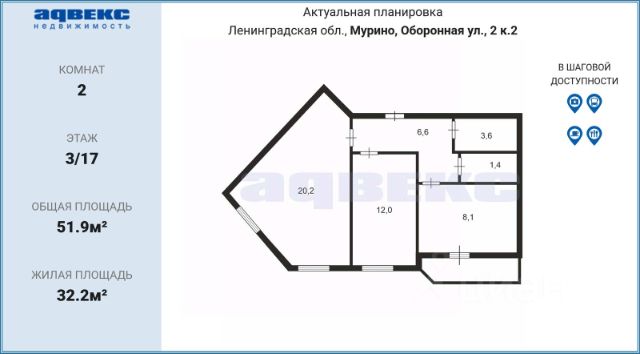 Продается просторная двухкомнатная квартира в Ленинградской Области, города Мурино, расположенная по адресу: город Мурино, ул.Оборонная, д.2, к.2. Дом располагается удобно по отношению к выезду из города Мурино и КАД. В 5 минутах находится остановка общественного транспорта и всего 15-минут пешком до станции Девяткино. Дворовая территория полностью огорожена, есть открытые парковочные места во дворе. Квартира имеет просторную кухню, где поделены рабочая и обеденные зоны- это позволит вам приглашать большое количество гостей и использовать функциональность помещения. Комнаты имеют правильную форму, что позволяет грамотно зонировать их. В ванной комнате и прихожей сделаны теплые полы. На входной двери поставлен надежный замок от компании Барьер. Так же лифтовая зона отделена от межквартирного коридора железной дверью с замком Барьер. В квартире выполнен косметический ремонт, будущим хозяевам частично остается меблировка и техника. В пешей доступности находятся продовольственные магазины Пятерочка, Магнит, платная стоматологическая клиника,салоны красоты, библиотека. Из социальной инфраструктуры детский сад и амбулаторное отделение Мурино и т.д. Прямая продажа, один взрослый собственник, обременения отсутствуют. Возможна ипотека, поможем с одобрением. При быстром выходе на сделку, дополнительная скидка. Звоните, либо пишите, отвечу на все ваши вопросы! Продам 2-комнатную квартиру на улице Оборонная в городе Мурино.