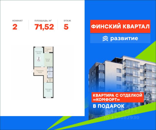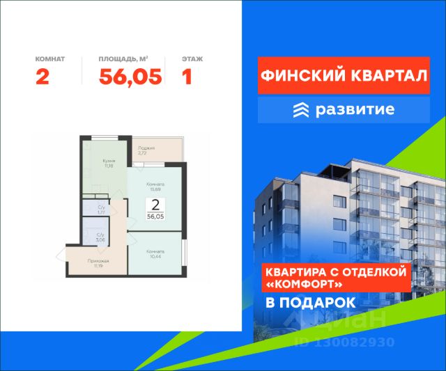 Продается квартира площадью 56.05 кв. м без отделки. Квартира расположена на 3 этаже 8 этажного дома, в жилом комплексе комфорт-класса "Финский Квартал". "Финский квартал" - это уникальный проект комфорт-класса для тех, кто хотел бы жить на природе, но при этом находиться вблизи Северной столицы. Расположенный в окружении одного из самых крупных парков Ленобласти - Лахтинского, проект предлагает своим жителям доступную инфраструктуру, комплексное благоустройство территории, 6 секций переменной этажности с современной архитектурой, которая гармонично дополнит район и будет радовать проживающих еще много лет. Найдите свою идеальную квартиру в ЖК "Финский Квартал"! Расположение Пешком: - 5 мин. до детского сада и супермаркета; - 8 мин. до остановки "Зеленая улица"; - 10 мин. до лесопарковой зоны. На автомобиле: - 3 мин. до Приозерского шоссе; - 10 мин. до Выборгского шоссе; - 12 мин. до КАД; - 30 мин. до ст. метро "Проспект Просвещения". Благоустройство - большой яркий двор с ландшафтным дизайном; - живая изгородь, кустарники и хвойники; - умное зонирование тихих и активных площадок; - сквер для прогулок и отдыха; - изумрудные лужайки для пикников; - дорожки для пешеходов и велосипедистов; - большие игровые площадки; - мягкое покрытие для безопасности детей; - тренажеры, турники и веревочные комплексы; - пространство только для пешеходов - без машин; - наземная парковка за пределами двора; - специальные площадки для выгула питомцев; - светлые дизайнерские холлы; - светопрозрачное остекление и большие окна; - декоративная подсветка парадных; - колясочные помещения для комфорта родителей; - места для хранения велосипедов и самокатов. Окружение - свежий воздух: парк усадьбы "Осиновая Роща", Лахтинский парк, лесопарк "Курортный", Левашовский заказник, Ново-Кавголовский лесопарк; - водные объекты: Сестрорецкий Разлив, пляжи у Тохколодского и Большого озер, залив Сярюнлахти; - инфраструктура: 2 детских сада, школа, кафе, продуктовый супермаркет, больница; - для крупных покупок: ТРЦ "Китай-Город", "Мега-Парнас"", "Гранд Каньон"; - активный отдых: горнолыжные комплексы "Охта-Парк" и "Токсово", конный клуб "Осиновая Роща", ФОК "Норус". Купить 2-комнатную квартиру в сельском поселении Юкковское Всеволожского района.