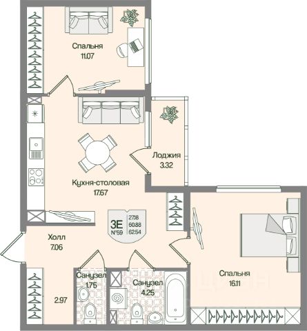 Продается 2-комнатная квартира площадью 51.15 кв.м в жилом доме "Панорама Юкки" в северной части Санкт-Петербурга с видами на северную природу, в 9 км от КАД. "Панорама Юкки" - это жилой дом в окружении парков: рядом парк усадьбы Е.И. Лопухиной "Осиновая роща", Экотропа Юкковские камы и Шуваловский парк. Из окон открываются прекрасные виды на северную природу и благоустроенную собственную территорию. "Панорама Юкки" для тех, кто ценит гармонию с природой, наслаждаясь благами городской инфраструктуры. Дом предлагает идеальные условия для семей: безопасную среду, спокойную добрососедскую обстановку, тишину и свежий воздух недалеко от города - всего 30 минут до станций метро "Проспект Просвещения" и "Парнас". Транспортная доступность: 7 минут пешком до остановки автобуса 7 минут пешком до супермаркета и пунктов выдачи 3 км до Приозерского шоссе 9 км до КАДа 15 минут на автомобиле до ТРЦ "Китай-город" 20 минут до Сертолово 9 км до станции "Левашово" 25 минут до Финляндского вокзала на скоростной электричке 30 минут до ст. метро "Парнас" и "Проспект Просвещения" на маршрутных такси Архитектура: Дом построен с применением финской панельной технологии и оснащен современными инженерными системами. Продумана тепло- и шумоизоляция, использованы энергоэффективные материалы и стеклопакеты Rehau. Наряду с современной системой отопления и мощной котельной все это делают квартиры невероятно теплыми и уютными, а также позволяют экономить на коммунальных расходах. Преимущества: Всеволожский район известен своими живописными северными лесами и природными парками с экологическими тропами, популярными зонами для пляжного отдыха и горнолыжными курортами. Жители первых этажей могут наслаждаться тишиной и загородной атмосферой, а также заниматься оформлением собственных небольших садов и цветников вдоль балконов. На последних этажах расположены квартиры редкого формата - с большими приватными террасами. С дренажной системой и подогреваемым покрытием эксплуатация террасы будет комфортной в любую погоду. Просторные светлые парадные с высокими потолками с витражным остеклением хорошо освещены и удобны для перемещений с колясками и велосипедами. На первых этажах есть места для хранения, колясочные, установлены современные домофоны. В шаговой доступности расположены начальная школа, детский сад и Монтессори-центр "Былина", а до новой общеобразовательной школы курсирует специальный школьный автобус