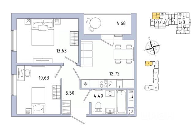 Продаётся 2 комнатная квартира 211 в ЖК IQ Гатчина, 5 оч., к. 1