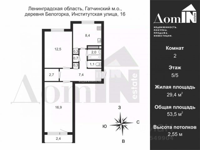 Арт. 110477769 Продается двух комнатная квартира в деревне Белогорка Гатчинского района на берегу реки Оредеж. В квартире две изолированные комнаты 16,9 м2 с выходом на застекленную лоджию и 12.5 м2, кухня 8.4 м2, просторная прихожая 7.4м2, санузел раздельный, гардеробная 2.7 м2. Квартира двух сторонняя, в хорошем состоянии. Находится в доме улучшенной планировки 1982 года постройки. На окнах установлены стеклопакеты, на полу ламинат, санузел в кафеле. Деревня Белогорка расположена в экологически чистом месте, вдали от шумных трасс, но при этом имеет хорошую транспортную доступность. До ЖД станции Сиверская можно доехать на общественном транспорте за 15 минут. До пляжа на реке Оредеж 5 минут пешком. В пользовании есть небольшой ухоженный огород с теплицей, гараж и кладовая в доме. Один взрослый собственник, никто не прописан. Показы по предварительной договоренности. Звоните, отвечу на все интересующие вопросы.