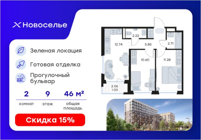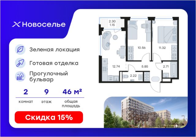 Продаётся 2-комн. квартира площадью 57,47 кв.м на 12 этаже 12 этажного дома (Корпус 4.1, Секция 1) проекта ПИК Таллинский парк. Светлый просторный подъезд на уровне земли, функциональная планировка, большие окна, без отделки. "Таллинский парк" - проект в Ленинградской области, в районе Новоселье. До станции метро "Проспект Ветеранов" - 15 минут на автомобиле, а до КАД можно доехать всего за 4 минуты. "Таллинский парк" включает 16 жилых домов, детский сад и школу. В проекте появится центральный сквер с обильным озеленением, а через весь квартал протянутся широкие пешеходные бульвары. В зелёных дворах-парках будут оборудованы современные детские и спортивные площадки, обустроены места для отдыха. На первых этажах разместятся магазины, кафе и другие сервисы. Проектом предусмотрены персональные кладовые помещения - это доступный, экономичный и удобный способ хранения сезонных и крупногабаритных вещей. Освободите свою квартиру для полноценной жизни. Район Новоселье активно развивается в городском формате: здесь уже работают детские сады, школа и магазины. Для любителей зимних видов спорта открыта круглосуточная ледовая арена. За покупками и развлечениями также можно быстро доехать: 10 минут - и вы в Аутлете Таллинское, гипермаркетах Лента, Леруа Мерлен и Окей. В 10 минутах на автомобиле находится Финский залив, на берегу которого расположились объекты культурного наследия. Рядом - Константиновский парк с отреставрированным дворцом, а чуть дальше расположена усадьба Знаменка. В великолепном Петергофе вы будете уже через 20 минут. Артикул 1026284 (Застройщик ООО "СПЕЦИАЛИЗИРОВАННЫЙ ЗА СТРОЙЩИК "СТРОЙ-ЭКСПЕРТ ") [cn_sbp_1846031]