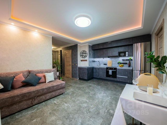 Современный просторный санузел, качественная сантехника, дорогая дизайнерская плитка, в прихожей и на кухне декоративная штукатурка, на кухне фреска. Лоджия утеплена.