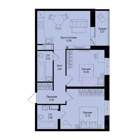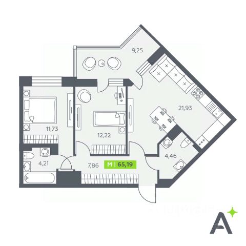 Просторная студия 22,2 м² + застеклённый балкон 3,14 м² — всего 25,24 м² полезного пространства.