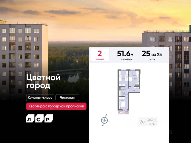 Цена действует при 100% оплате и на определенные ипотечные программы. Подробности — в отделе продаж по телефону. Продается 2-комнатная квартира в ЖК "Цветной город" на 25 этаже. Общая площадь составляет 45.20 кв. м. Квартира с чистовой отделкой Срок сдачи дома: 4 квартал 2025. Жилой комплекс "Цветной город" располагается по адресу Санкт-Петербург, Красногвардейский. "Цветной город" - современный масштабный эко-проект: жилые кварталы со своей сетью улиц, пешеходными бульварами и велодорожками, площадками для спорта и отдыха. Кварталы располагаются вдоль береговой линии реки Охты. "Цветной город" - это жизнь вблизи природы, но с городской пропиской. К 2026 году на берегах реки Охты будет создан Пейзажный парк с летними экотропами и зимними горками для тюбингов, скейт-парком и летним кинотеатром. В ЖК "Цветной город" запланировано и уже частично реализовано строительство 10 школ, 16 детских садов, 4 поликлиники, больница, ТРК, спортивно-оздоровительные сервисы С центром Петербурга жителей "Цветного города" свяжет Пискарёвский проспект, удобный выезд на КАД позволяет без труда добираться до других районов. Расположение: • 10 минут на авто до КАД; • 15 минут на авто до станций "Гражданский проспект" и "Академическая"; • 20 минут до ж/д станции "Ручьи".; Квартира сдается с готовой отделкой из современных экологичных материалов: на стенах плотные белые обои под покраску, на полу износостойкий матовый ламинат, в санузлах керамическая плитка на стенах и керамогранит на полу. Трубы отопления скрыты в стяжке пола и не мешают мебели. В квартире предусмотрено большое количество двойных розеток и выключателей. В ЖК "Цветной город" предусмотрена система "Умный дом": смартфон с приложением является ключом от всех дверей в ЖК, гостевой доступ оформляется в приложении, видеозвонки от домофона поступают в приложение, показания счетчиков автоматически передаются в учетные базы ЖКХ. Преимущества: • Рядом лесопарк и река Охта • Живописные виды из окон • Безбарьерная среда • Развитая социальная инфраструктура • Система "Умный дом" Успейте приобрести квартиру на выгодных условиях! Чтобы узнать подробности, обращайтесь за консультацией по телефону.