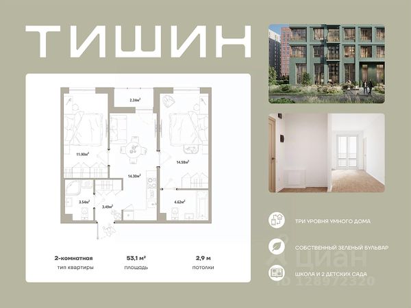 Продаётся 2-комнатная квартира 173, общей площадью 57.74 кв.м., на 12 этаже. Дом комфорт-класса, 12 этажей, в окружении леса и малоэтажной застройки. Проект с умным домом. РАСПОЛОЖЕНИЕ И БЛАГОУСТРОЙСТВО ЖК "Тишин" расположен в поселке Новоселье в окружении природы — рядом находятся Гореловский лес и Шунгеровский заказник, что делает его идеальным для любителей чистого воздуха и покоя. Особенность комплекса — это благоустроенные дворы с зонами для отдыха, спорта и игр, а также центральный бульвар протяженностью 1 км с велодорожками, спортивными площадками и зонами для прогулок. На территории комплекса предусмотрены детские сады, школа, коммерческие помещения и паркинги, что создает комфортную среду для жизни. Три уровня умного дома 1. Уровень квартира • Управление освещением, климатом и водоснабжением через мобильное приложение или голосового помощника. • Система защиты от протечек воды с автоматическим перекрытием стояков. • Пожарная сигнализация с уведомлениями в режиме реального времени. 2. Уровень дома • Онлайн-доступ к видеонаблюдению, включая просмотр архива. • Контроль доступа на этажах через СКУД (систему контроля и управления доступом). 3. Уровень ЖК • Единое мобильное приложение Wise City для общения с управляющей компанией, оплаты счетов и сервисных заявок. ГК "Едино" — один из лидеров рынка недвижимости Северо-Запада с 24-летним опытом. Компания известна высокими стандартами качества и соблюдением сроков сдачи объектов. В цифрах: Более 50 реализованных проектов. 60 000+ счастливых жителей. Мы организуем для вас бесплатный трансфер до офиса продаж и обратно!