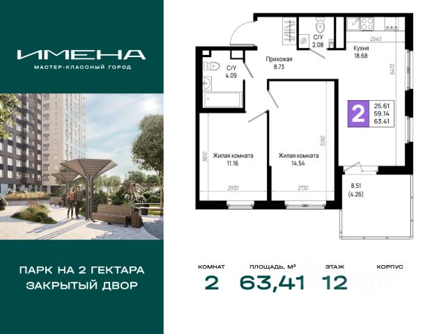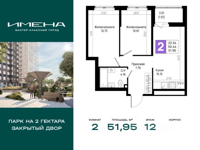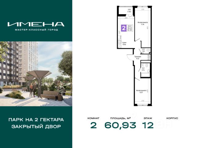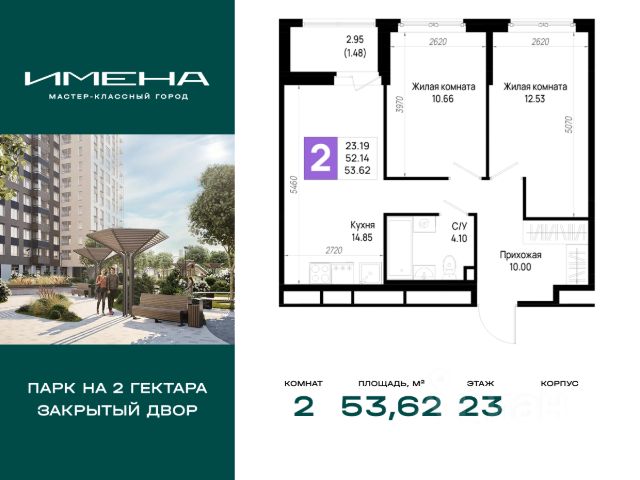 В живописном районе на юге Санкт-Петербурга, рядом с берегом Невы и Невским лесопарком, продается 2-комнатная квартира площадью 53.62 кв. м, расположенная на 23 этаже 23-этажного дома 6. Квартира находится в жилом комплексе комфорт-класса "Имена" от ГК "ССК". О проекте Жилые кварталы "Имена" - это проект, призванный стать отправной точкой для самой значимой главы вашей личной истории. Здесь созданы все условия для формирования крепких семейных ценностей, реализации амбиций и поиска источников для новых достижений. Уникальное расположение на стыке городской динамики и природной красоты обеспечивает максимальный комфорт и сбалансированный образ жизни. Это место для тех, кто мастерски видит перспективы, но хочет жить комфортно уже сейчас. Комфорт без компромиссов Квартиры с особым вниманием к деталям: витражное остекление балконов, высокие потолки (до 2,75 м), микроклиматические клапаны на окнах, разводка коммуникаций и электрики, а также интеллектуальный учёт энергоресурсов. Ваш новый дом - это территория под надежной защитой. Умный шлагбаум и передовые системы видеонаблюдения гарантируют безопасность. Передвижение по этажам легкое и приятное благодаря скоростным бесшумным лифтам, а для велосипедов и колясок предусмотрены специальные закрытые помещения. Мы позаботились обо всем: от теплых и гостеприимных холлов до вместительных кладовых. Оцените удобство бесконтактных домофонов с управлением через мобильное приложение и легкий доступ благодаря входам на уровне земли. Успейте приобрести квартиру на выгодных условиях уже сегодня! Доступна ипотека, рассрочка на 6 и 12 месяцев, а также полная оплата. * Возможности для отдыха Сердцем жилого комплекса "Имена" станет бульвар длиной более 1200 метров с парком площадью 2 гектара - пространство, где каждая деталь направлена на создание условий для комфортного отдыха и продуктивной работы на свежем воздухе. Лаунж-зоны с WI-FI, многоуровневое освещение и тщательно спроектированное озеленение превращают это место в идеальное сочетание природы и технологий, где приятно бывать в любое время дня. Для тех, кто предпочитает спокойные практики, предусмотрена крытая площадка для йоги, медитаций и групповых занятий. Любители активного образа жизни оценят воркаут-площадки, уличные тренажеры, беговые дорожки с мягким покрытием и велотреки с датчиками для подсчёта пройденных кругов. Всё рядом Всё необходимое для комфортного проживания находится внутри квартала: - Общественный центр для жителей: пространство для общения, обучения, творчества и саморазвития. - Открытый кинотеатр с показами фильмов и мини-концертами. - Фермерский рынок, где всегда можно купить свежие продукты, цветы и авторские товары ручной работы. - Современные школа и детский сад. - 10 многоуровневых наземных паркингов на 3500 машино-мест; - Магазины, кафе, рестораны, фитнес-клубы и салоны красоты на первых этажах домов. "Имена" - кварталы, где создаётся будущее. *Подробности о способах покупки квартиры уточняйте по телефону офиса продаж.