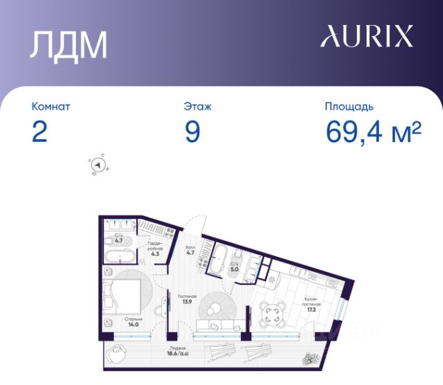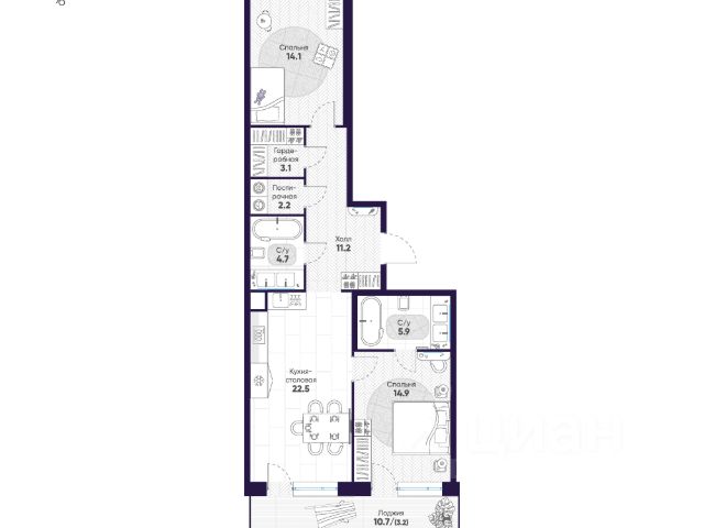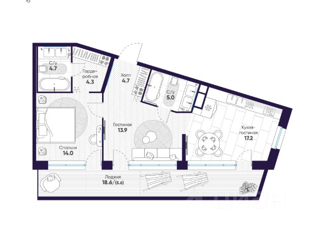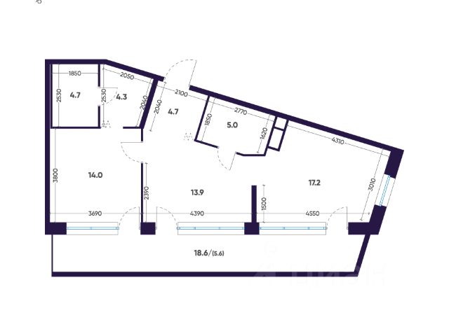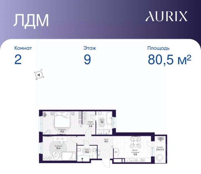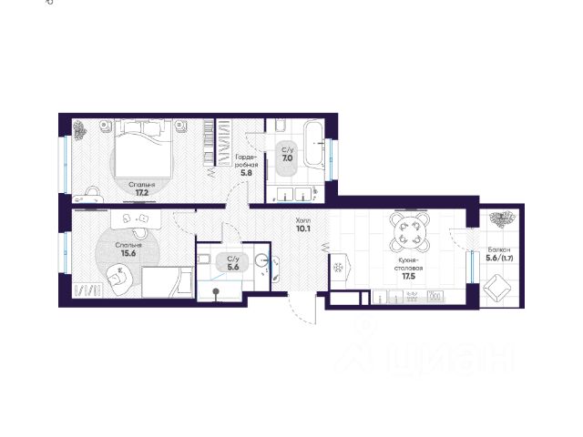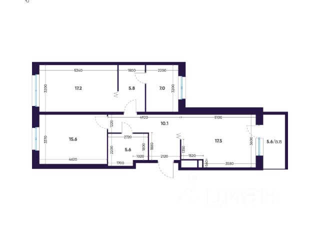 Квартира с двумя спальнями в комплексе "Сампсониевский 32" от LEGENDA на 6 этаже.