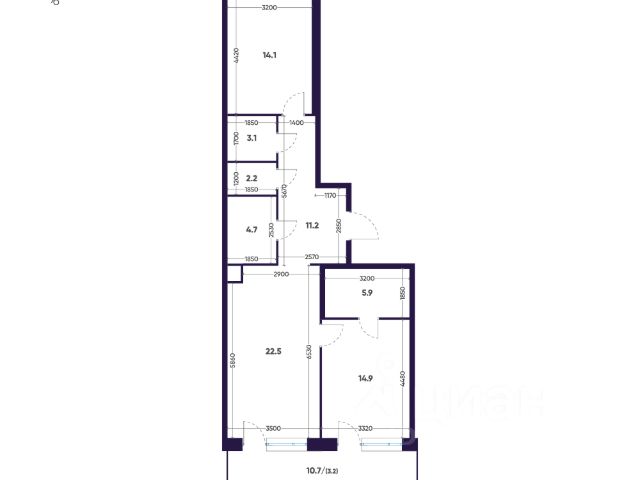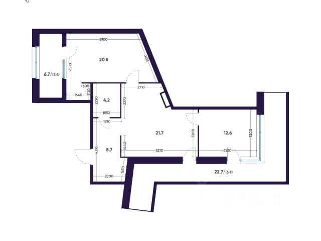 -Высота потолков 2.7 м.