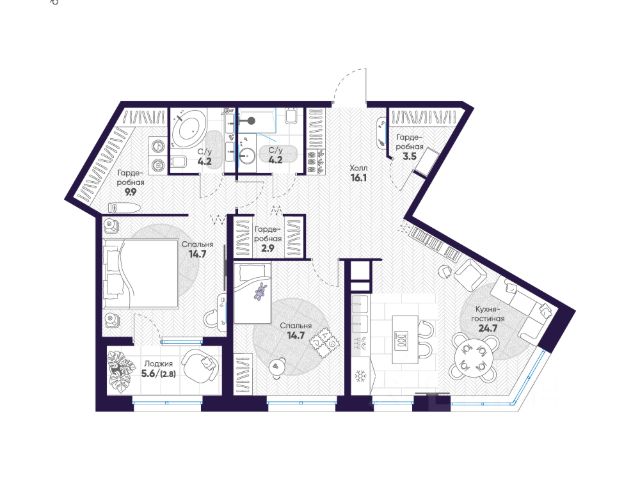 В ЖК "Сампсониевский, 32" много вариантов планировок: квартиры с террасой, мастер-спальней, ванной комнатой с окном, гардеробной комнатой.