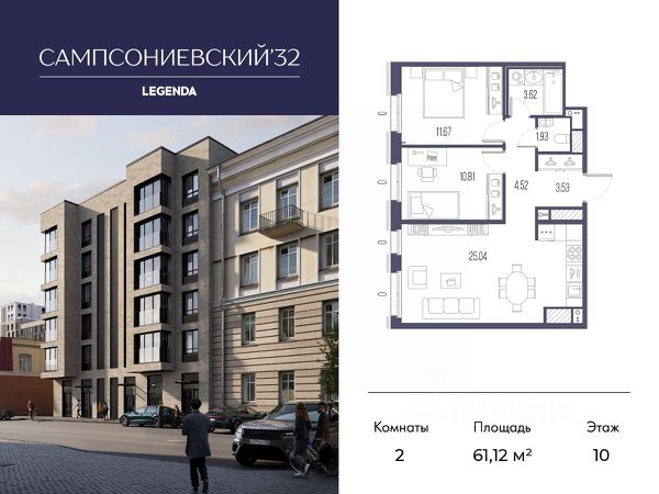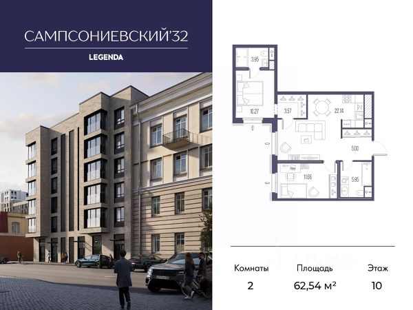 Квартира с двумя спальнями в комплексе "Сампсониевский 32" от LEGENDA на 6 этаже. -Общая площадь: 66.49 кв.м. -Жилая: 24.84 кв.м. -Площадь просторной кухни-столовой: 20.87 кв.м. -Высота потолков 2.7 м. Квартира - распашонка, без проходных комнат, окна выходят на paзные стороны дома. В квартире один раздельный санузел. ЖК "Сампсониевский, 32" квартал бизнес-класса в Выборгском районе Санкт-Петербурга недалеко от набережной Большой Невки и Петроградской стороны. Отличают комплекс каскадные фасады с большой площадью остекления, видовые квартиры с террасами. Современные инженерные и технические решения, повышающие качество жизни TechnoBox включают в себя: стационарный и удаленный контроль дома, систему Air Design, обеспечивающую чистый воздух без лишнего шума, мультисервисную сеть, объединяющую коммуникационные системы. Квартиры сдаются с предчистовой отделкой: выровнены пол и стены, проведена электрика, предусмотрена шумоизоляция, встроенная система вентиляции. В каждой квартире установлена взломостойкая входная дверь, окна со специальным термоизолированным алюминиевым профилем. В ЖК "Сампсониевский, 32" много вариантов планировок: квартиры с террасой, мастер-спальней, ванной комнатой с окном, гардеробной комнатой. Двор закрыт от транспорта, здесь будут зоны с дизайнерским оформлением для игр и отдыха. Срок сдачи 4 квартал 2026 года. В отапливаемом подземном паркинге 298 мест, спуститься туда можно на лифте из своей квартиры. Комплекс находится на границе крупных районов, рядом с набережными, которые ведут в Приморский, Калининский и Центральный районы, а через Сампсониевский, Гренадёрский и Кантемировский мосты можно попасть в Петроградский район. До станции метро "Выборгская" 900 м, до станции метро "Петроградская" 2,6 км. Финляндский вокзал находится в 2,5 км от ЖК, а Западный скоростной диаметр (ЗСД) в 10 км. Рядом с ЖК находится несколько гимназий, общеобразовательных школ и детских садов. Здесь много медицинских учреждений, кафе, ресторанов, торговых центров, гипермаркетов. Меньше чем в 1 км от ЖК Сампсониевский и Выборгский сады, а в 2 км находится Ботанический сад, набережная реки Карповки с качелями и зонами отдыха у воды. Квартира реализуется напрямую от застройщика. Обращение по данному предложению осуществляется через отдел продаж застройщика. Для агентств недвижимости действует отдельный формат сотрудничества.