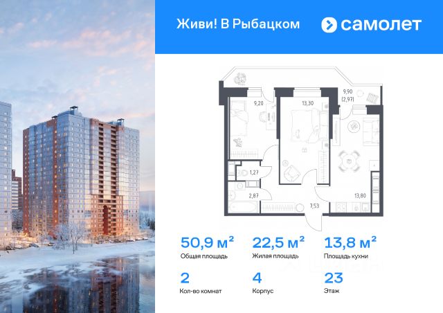 Продается уютная 2-комнатная квартира от застройщика в жилом комплексе "Город звезд" в новом городе на правом берегу Невы. До метро можно добраться на транспорте всего за 13 минут. Удобная, классическая, функциональная европланировка, большая кухня-гостиная 15.07 м², вместительная прихожая 6.29 м². Общая площадь квартиры - 49.13 м², жилая 23.06 м², высота потолка 3 м. Квартира продается с отделкой "NORD LINE WHITE". Что особенного в ЖК "Город звезд"? • Инновационный Лицей Setl с оригинальной архитектурной концепцией и уникальной образовательной средой • Невский лесопарк под окнами - всегда свежий воздух и полноценный отдых на природе • Четыре тематические площади отдыха с разнообразным благоустройством • Аллея Звёзд - променад протяженностью 5 км с ландшафтным озеленением, зонами отдыха и велодорожкой • Выход на набережную реки Утки, где можно порыбачить или взять напрокат лодку • Единая входная группа с ресепшен и подземный паркинг