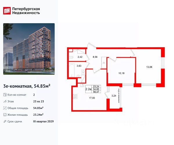 Строим кварталы для жизни с заботой о будущем. Предлагается 2-комнатная квартира комфорт-класса 60,02 кв.м в корпусе 35.2 на 11 этаже, в ЖК "Новое Колпино"