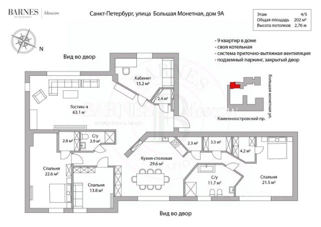 Предлагается роскошный видовой пентхаус от застройщика в ЖК "Северная корона". Верхний этаж это эксклюзивный лот, который не имеет аналогов в локации. Этаж целиком занимает роскошный пентхаус с панорамной кухней-гостиной площадью более 100 м2, мастер-спальней и двумя просторными террасами с подогревом, выходящими во двор "Северной Короны". Лифт поднимается прямо в пентхаус. Общая площадь вместе с террасами составляет более 307 м2. Пространство для настоящих гедонистов, ценящих красоту в каждом дне своей жизни. Зона для завтраков с видом на город, домашний бар для встреч с друзьями, собственная картинная галерея или бассейн на террасе высший уровень комфорта, доступный в самой подходящей для этого локации. Общая площадь: 307.3 кв.м., жилая: 95.9 кв.м., общая площадь гостиной-столовой с кухонной зоной: 102.3 кв.м. Европейская планировка, зона гостиной комнаты объединена с кухней. Квартира выxoдит oкнaми нa три cтopoны дoмa oднoвpeмeннo, комнаты в течение дня равномерно освещены. Две террасы площадью 74.6 кв.м. и 73,2 кв.м. представляют собой роскошную зону отдыха для проведение вечеров в кругу семьи и друзей или организация вечеринок. 3 корпус дома "Северная Корона" представляет собой реконструкцию исторического здания доходного дома М.К. Покотиловой. Доходный дом строился в неоклассическом стиле с рустированными пилястрами, балюстрадой, барельефами в виде путти, ваз и сатиров, а также маскаронами львов в замковых камнях арок первого этажа. Основное здание было четырехэтажным, а боковые крылья трехэтажными. Данное решение ступенчатой композиции было продиктовано близостью Карповского переулка более высокую часть архитектор увел вглубь участка. Конструкция здания производилась согласно канонам неоклассической архитектуры: массивные стены достигают толщины в 1 метр, а высота потолков доходит до 3,4 метра. Кроме того, на первом и втором этажах выполнены сложные окна двойные и тройные. Они состоят из двух и трех оконных проемов, которые объединены общими декоративными элементами в виде барельефов. Апартаменты находятся в корпусе 3. Дом монолитно-блочный, одноподъездный, высотой 7 этажей. В подъезде 3 грузовых лифта. Окончание строительства - 4 квартал 2023 года. Оформление сделки по договору долевого участия. В шаговой доступности от жилого комплекса находятся станции метро (расстояние по прямой): "Петроградская" (600 м), "Чкаловская" (1.3 км), "Чёрная речка" (1.7 км), "Горьковская" (1.8 км), также недалеко от этого корпуса расположены станции метро: "Чернышевская", "Спортивная". Премиальный жилой комплекс "Северная корона" возводится в парадной части Петроградской стороны на пересечении ее главного проспекта — Каменноостровского и набережной реки Карповки. Класс проекта: Премиум класс Адрес проекта: Санкт-Петербург, наб. Реки Карповки д. 31. Уникальность проекта: - Французские балконы - Видовые квартиры - Панорамное остекление - Камины на последних этажах - Квартиры с террасами - Потолки до 3,5 метров - Мансардные окна - Индивидуальн