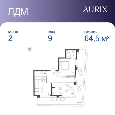 Продается 2-к квартира без отделки в ЖК "ЛДМ". Общая площадь квартиры — 64.5 кв. м, этаж 9 из 9. Тип дома — монолитный. Цена указана при 100% оплате. Описание из материнского фида