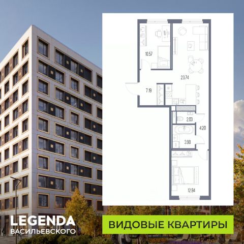 Просторная двухкомнатная квартира с предчистовой отделкой в ЖК "LEGENDA Васильевского" на 10 этаже. Общая площадь: 64.54 кв.м., жилая: 23.41 кв.м., площадь просторной кухни-столовой: 23.74 кв.м. Квартира - распашонка, без проходных комнат, окна выходят на paзные стороны дома. В квартире один раздельный санузел. Высота потолков 2.7 м. "LEGENDA Васильевского" жилой квартал в минутной доступности от Финского залива, главного креативного хаба Санкт-Петербурга Севкабель Порта и других точек притяжения. Современные инженерные и технические решения, повышающие качество жизни TechnoBox включают в себя: стационарный и удаленный контроль дома, систему вентиляции Air Design - здоровое дыхание без лишнего шума, мультисервисную сеть, объединяющую коммуникационные системы, удаленное управление электроприборами, контроль отопления в каждом помещении, поддерживающий оптимальный температурный баланс во время "холодного" периода", датчики протечки, датчик открытия входной двери. Мультисервисная сеть (МСС) объединяет ключевые слаботочные системы дома, задавая им единый высокий стандарт работы, обеспечивая надёжность их функционирования и управления. Квартира готова к декорированию. Застройщиком сделана шумоизоляция; стены подготовлены для отделки; проведена электрика с учетом рекомендаций по расстановке мебели и бытовой техники; выровнен пол. В каждой квартире установлена взломостойкая входная дверь, окна со специальным термоизолированным алюминиевым профилем. Двор жилого комплекса "LEGENDA Васильевского" закрыт. Проект состоит из шести разноформатных корпусов с ритмичными фасадами в духе пост-конструктивизма. Геометрия жилого комплекса состоит из четко простроенных осей, чередующих открытые пространства и объемы корпусов, каждый из которых обладает своим визуальным кодом индивидуальным рисунком фасада и цветовой палитрой. Корпуса образуют периметр с общественными пространствами: площадью с кафе, магазинами и пешеходным променадом с детскими игровыми хабами, местами для спокойного отдыха и workout-зоной. Срок сдачи 4 квартал 2027 года. На территории комплекса предусмотрены теплый подземный паркинг и два наземных 4-х этажных паркинга.
