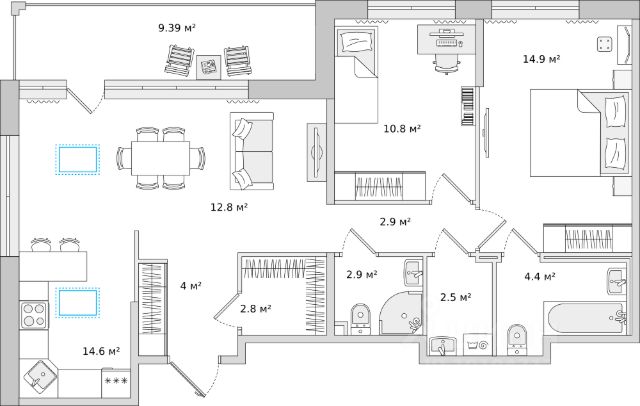 Наши специалисты разработали 47 различных типов планировочных решений, каждое из которых продумано с учетом требований эргономики и функциональности, где нет бесполезной площади. Общее для всех вариантов — увеличенные оконные проемы, а во многих комнатах сразу по два окна, что обеспечивает естественное освещение и ощущение простора. На верхних этажах располагаются квартиры с панорамным остеклением. Ещё больше света и панорамных видов — для тех, кто ценит красоту каждого дня!