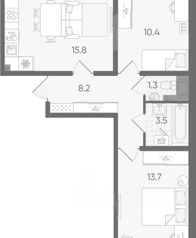 Важное отличие заключается не только в цене, но и в том, что в стоимость уже включены мебель и техника, которые сэкономят вам время и деньги: