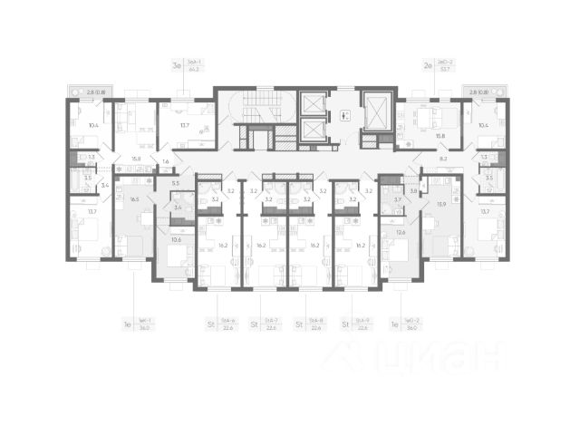 •Всего в квартире три туалета, три душа, три раковины в ванной, три раковины на кухне, три плиты (по одному на каждые две комнаты).