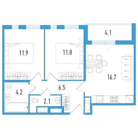 • ✅ Минимальная площадь: 42,3 м²