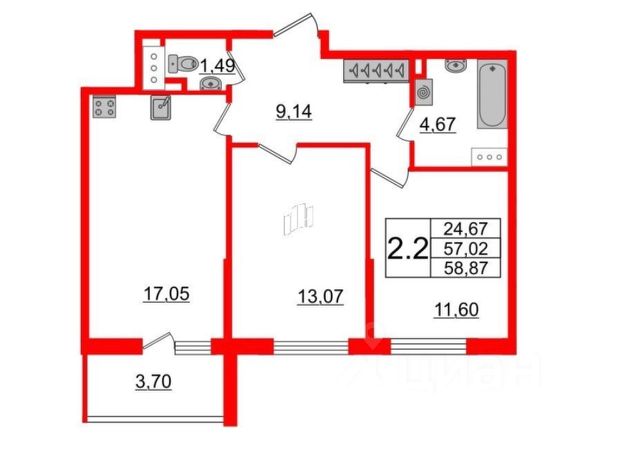 • ✓ В базе Циан 1 2-комнатных квартир на последнем этаже на улице Ивана Куликова в Санкт-Петербурге