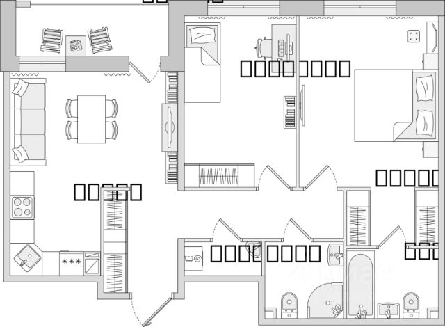 Мебель в комнатах, встроенные шкафы, кухонный гарнитур с встроенной посудомойкой и техникой остается новому собственнику в подарок!