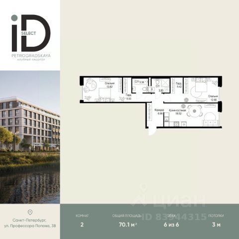 • ✓ В базе Циан 27 2-комнатных квартир на последнем этаже на улице Профессора Попова в Санкт-Петербурге