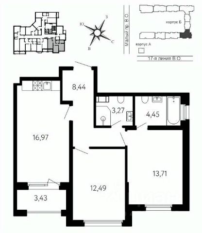 Просторная двухкомнатная квартира в Клубный квартал "Ассамблея" на 7 этаже. Квартира без отделки, после выдачи ключей можно делать ремонт. Общая площадь: 70.88 кв.м., жилая: 29.04 кв.м., площадь просторной кухни-столовой: 18 кв.м. Квартира - распашонка, без проходных комнат, окна выходят на paзные стороны дома. В квартире один балкон и одна лоджия, один совмещенный и один раздельный санузел. Высота потолков 3.21 м.