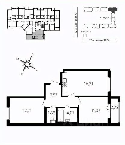 Дом монолитный, двухподъездный, высотой 7 этажей. Квартира находится во 2-й секции в корпусе 1. На этаже 4 квартиры. В подъезде 1 грузовой лифт. Начало строительства - 2 квартал 2025 года. Окончание строительства - 3 квартал 2028 года. Оформление сделки по договору долевого участия.